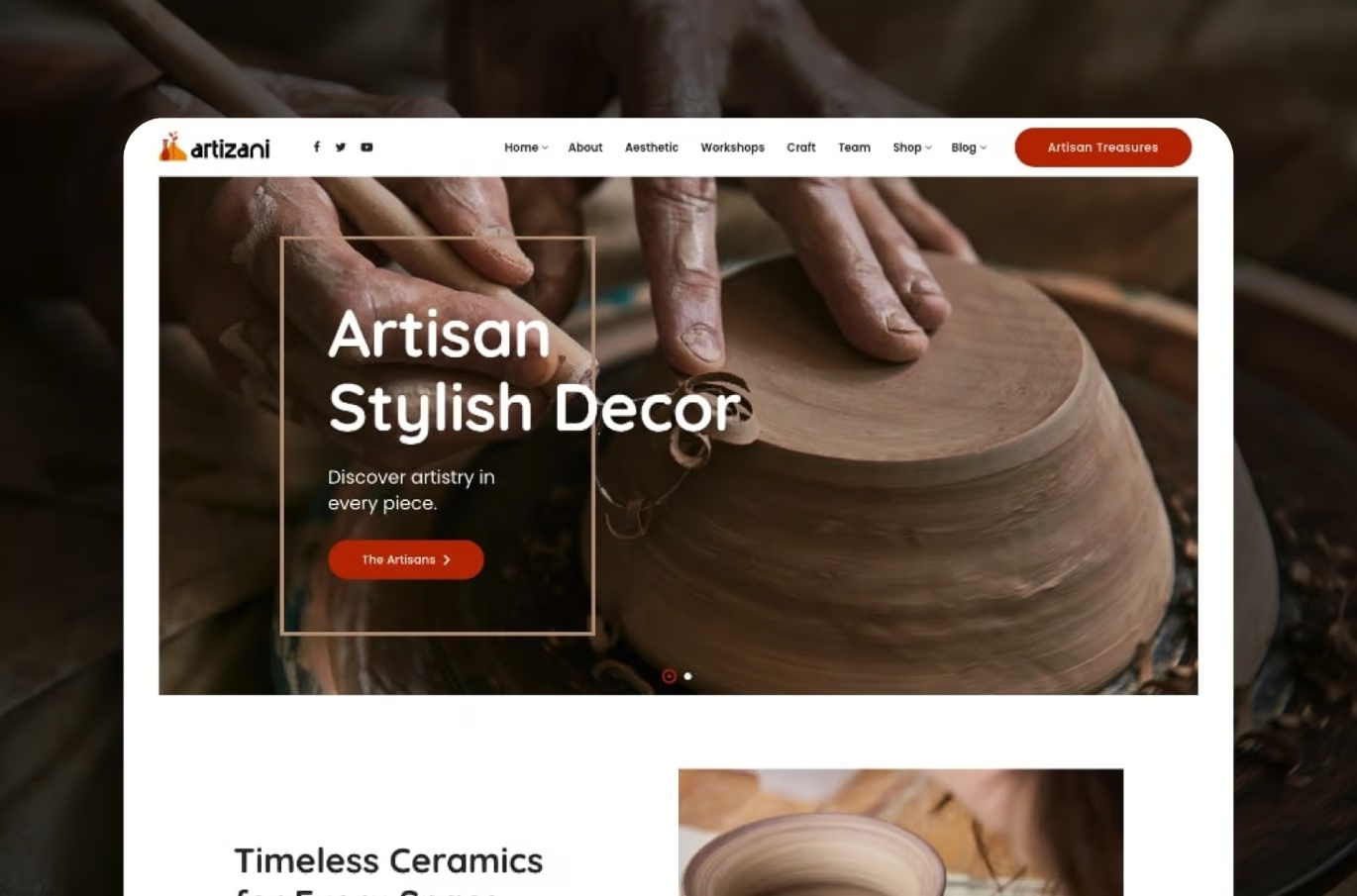 Artizani – O melhor Tema WordPress para artesãos e artesãos. Perfeito para artesãos que valorizam estilo e funcionalidade, esse tema é ideal para vender itens artesanais, móveis personalizados, obras de arte exclusivas, decoração de casa, cerâmica, cerâmica, têxteis, acessórios de moda, joias, pulseiras e brincos e muito mais. A Artizani fornece as ferramentas para apresentar seu ofício de forma bonita